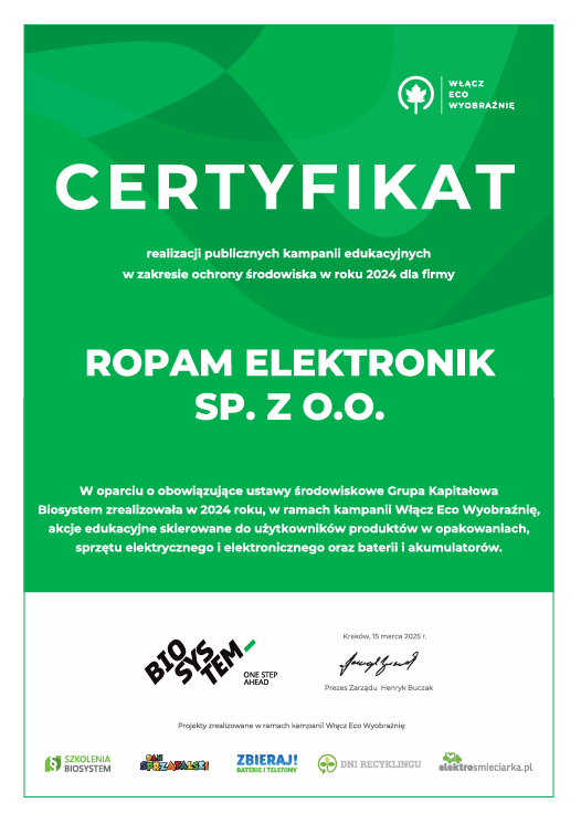 W ramach kampanii „Włącz Eco Wyobraźnię”, firma Biosystem zrealizowała dla Ropam Elektronik działania edukacyjne promujące postawy proekologiczne oraz odpowiedzialne gospodarowanie odpadami.