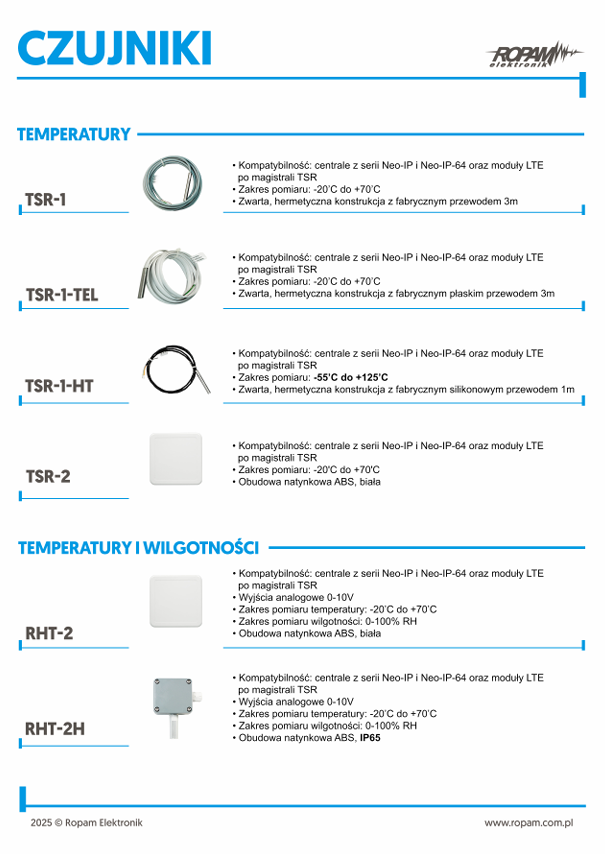 Czujnik temperatury, jest urządzeniem przeznaczonym do współpracy z urządzeniami Ropam. Pozwala na pomiar temperatury w powietrzu. Wartość mierzona jest wykorzystywana przez moduły oraz centrale do realizacji funkcji termostatu.
